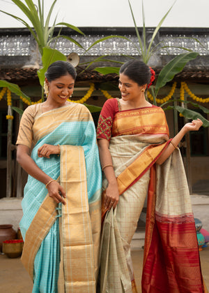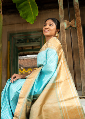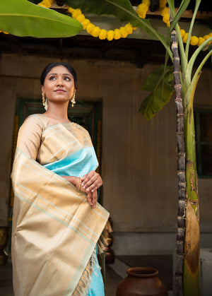 Aqua Blue Silk Saree with Zari Woven Pattern