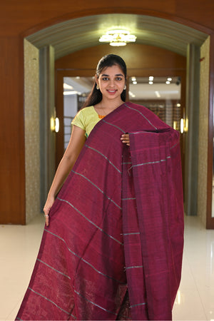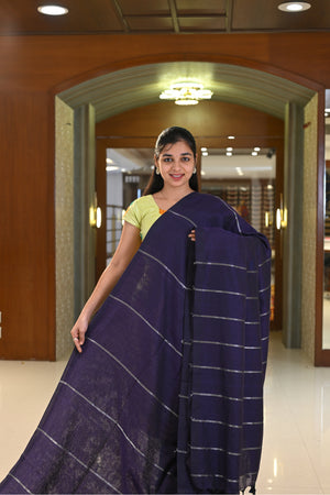 Art Linen Cotton Saree with Silver and Copper Lines Design