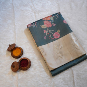 Saree Blouses: Blouse Floral Print Contrast Colour