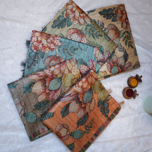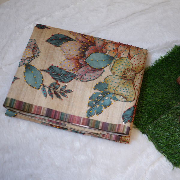 Raw Silk Sarees with Floral Print Chikan Embroidery