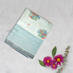 Semi Dola Saree with Digital Print, Zari Line with Butta Weaving Design