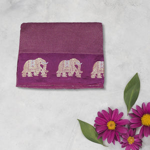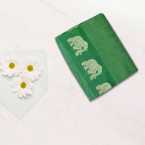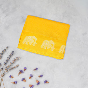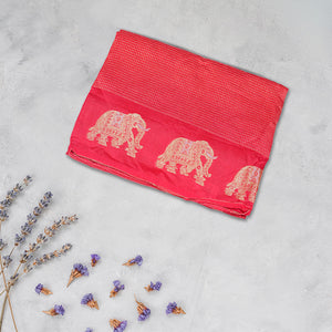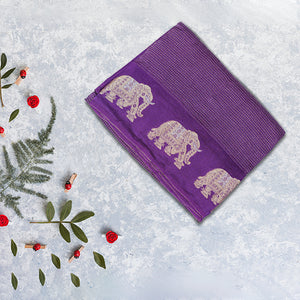 Elegant and lightweight, this viscose silk saree features a beautifully woven elephant border that adds a touch of tradition and charm. With its soft texture and graceful drape, it's perfect for festive occasions, weddings, and cultural events