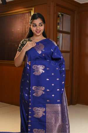 Semi-Soft Silk Saree with Diamond and Mango Putta Weaving with Rose Gold Zari