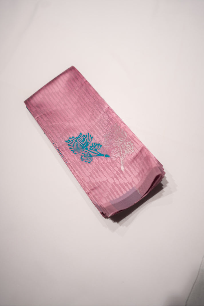Semi Soft Silks Sarees with Emboss Silver & thread Work Flower Design