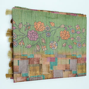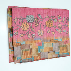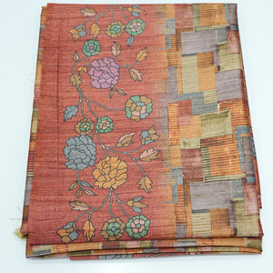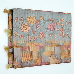 Semi Tussar With Checks Design Sarees Digital Print Saree
