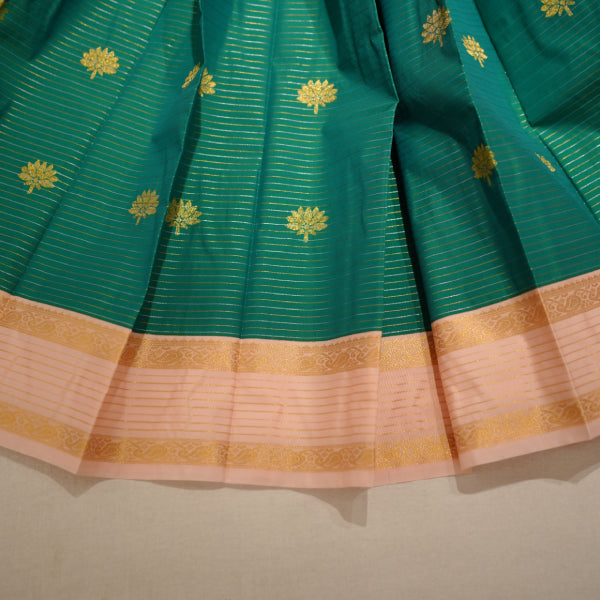Body Design: Silver With Gold Zari Design Line Design and Lotus Gold Putta Weaving
