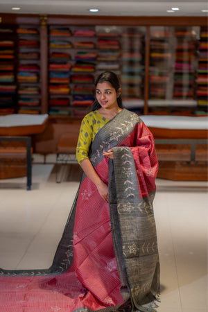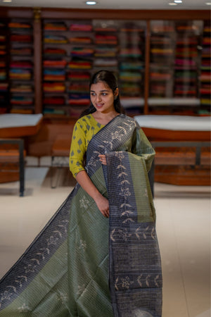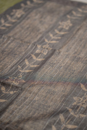 Slab Line Tissue Sarees with Stripe Line Floral Print Design